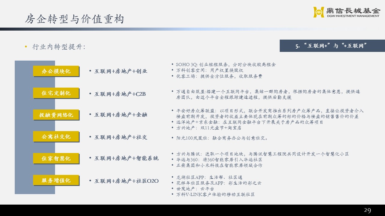 第二个转型,泰禾比较关心的是房地产开发这块怎么转型,特别是商业地产的转型。我们现在准备走出来轻资产的板块。通过轻资产模式,未来泰禾有大规模的发展,后面的招商、一卡通、第三方支付的公司,这是我们未来的转型方向,往轻资产走。