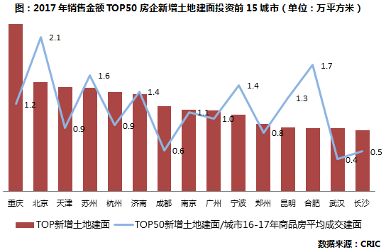 从销售金额TOP50房企今年以来的拿地布局来看,一二线城市因为其庞大的市场容量吸引了大部分投资,典型如北京、天津这类城市,还有像重庆,土地供应充分加上市场容量充足,也成为TOP50房企的投资热土。但一些城市也因为房企的扎堆进入或使得竞争加剧,如合肥16-17年的商品房平均成交面积为600万方,但今年销售金额TOP50房企已在合肥取得1027万方土地建面,是该市16-17年商品房平均成交建面的1.7倍,未来随着大量的项目入市或将直接对各家房企造成压力。同时苏州、济南均存在类似情况,TOP50房企的新增土地建面分别为两市近两年商品房平均成交建面的1.6、1.4倍,其未来的市场压力不言自明。而北京的项目未来也存在销售压力,与前几个二线城市不同的是,这方面压力主要来源于政府的价格和预售证管制。