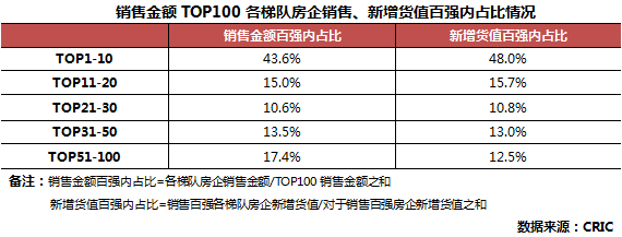 对比今年销售金额各梯队房企的销售、新增货值在百强中的占比来看,未来百强内房企的规模还将继续分化。销售十强房企的销售额在百强中的占比达到44%,而对应企业的新增货值占比却达到了48%,因此未来TOP10房企的规模还有更高的上升空间。其他梯队来看,TOP50之后的房企稍显动力不足,企业的销售金额占比均要高于其新增货值,可以看到百强房企分化正在加速,企业的规模之争将愈演愈烈。