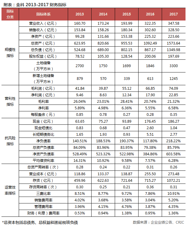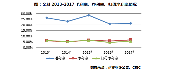 2017年,金科的毛利率为21.32%,同比上升0.6个百分点;净利率为6.58%,同比上升了1个百分点。由于金科在2016年开始增长提速,合约销售大幅增加,加上销售均价的提高,未来金科的利润率水平有望继续提升。