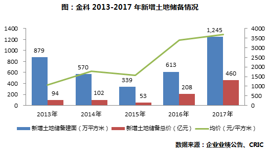 2017年金科加大了土地投资的力度,全年新增79个项目,新增土地储备总价为460亿元,同比增长120%;新增土地储备1245万平方米,同比增长103%。2018年金科计划土地项目投资约600亿元,进一步加大扩张力度。