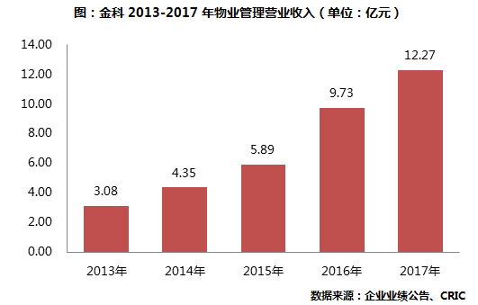 物业管理也是金科的一项重要业务, 2017年的营业收入为12.27亿元,同比增长了26.17%,对公司营业收入的占比增至3.53%,毛利率则达到了23.83%。2017年金科新增合同管理面积约7560万平方米,新进驻城市40个,年末在管项目556个,在管面积达2亿平方米,累计进驻城市107个,分布于重庆、北京、四川、江苏等24个省市。