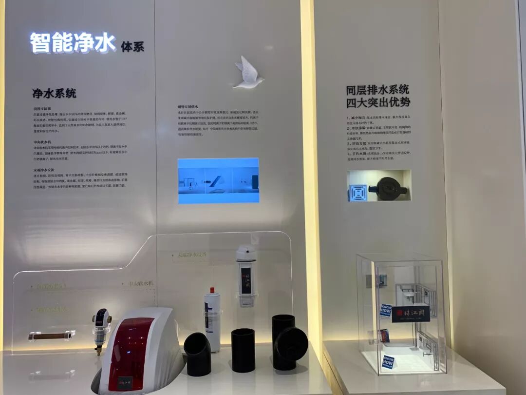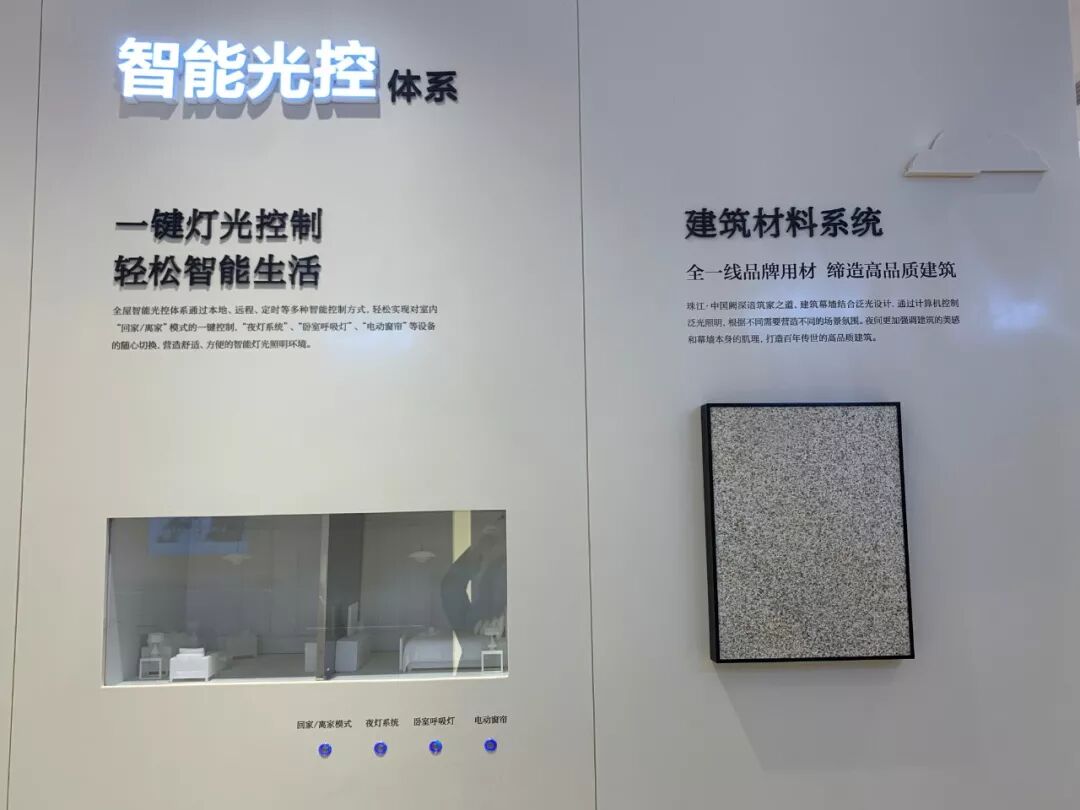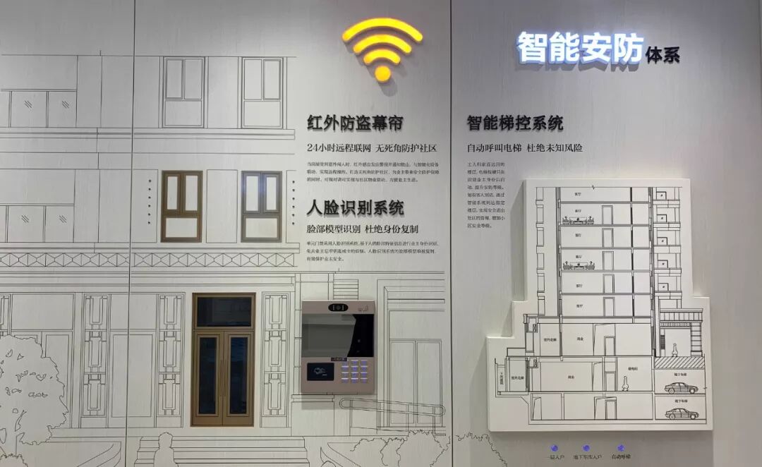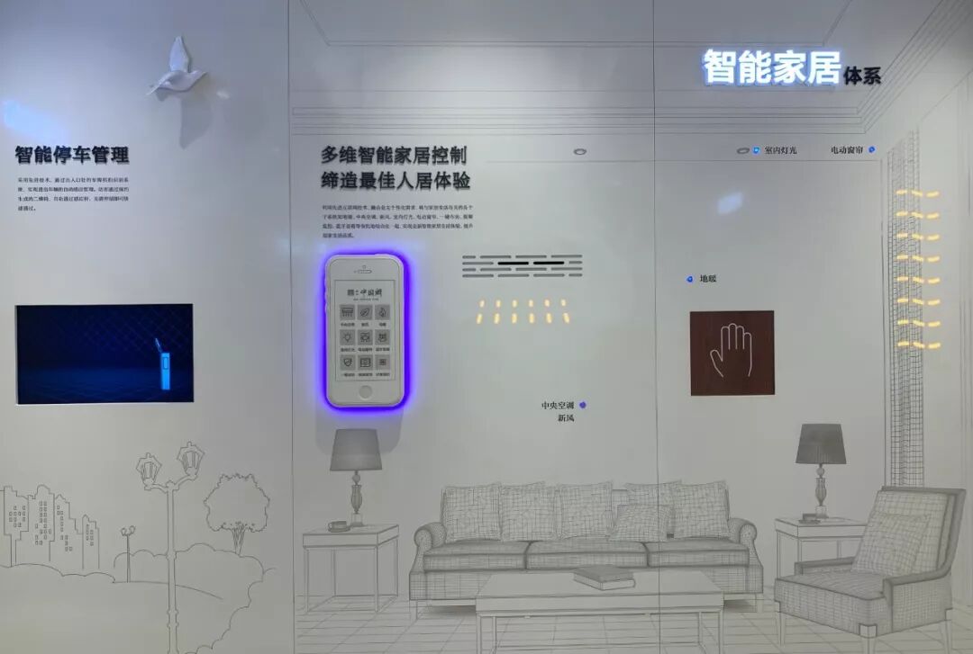 此外,在售楼处设有专门区域“人居科技体验馆”展示智能化,以图文形式配合动态灯光进行生动形象的展示。