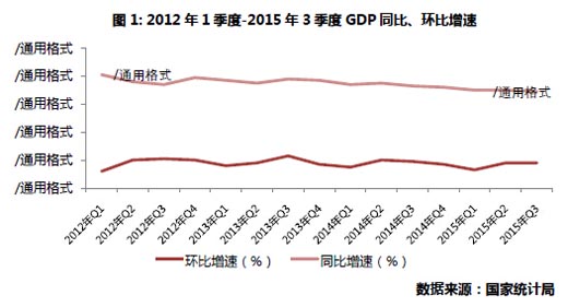 纵观2015年经济,政府致力于经济转型,将投资驱动、以制造业为主导转变为以服务为导向、由消费驱动,但服务业增速不足以弥补投资增速放缓所带来的空缺。数据层面上,中国三季度GDP同比增速为6.9%,创2009年第一季度以来新低,六年来首次跌破7%。