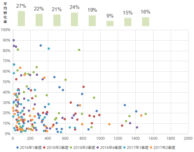 单季度来访量——成交转化率分析