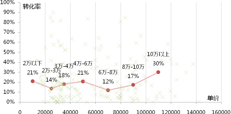 高单价产品平均转化率更高,高总价产品却恰好相反
