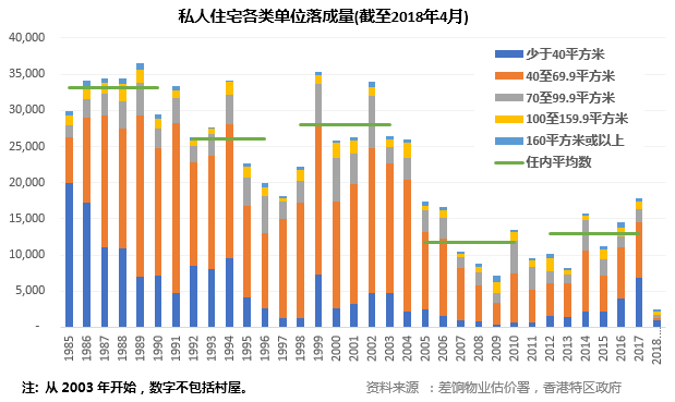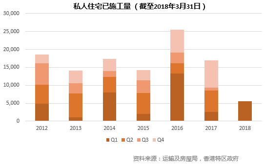 由于前几年的落成量皆不及同年施工量,2017年的落成量是近年首次接近预测的18000伙目标。据差估署公布《香港物业报告2018》初步统计数字,2018年私人住宅落成量预计在18,130伙,2019年预计在20,370伙,两年合计高达38,500伙,约半数集中在新界。根据2017年数据估算,未来3-4年可以供应市场的一手私人住宅单位维持在约9.7万个的高水平,可以预期香港楼市供应偏紧的情况将会缓和。