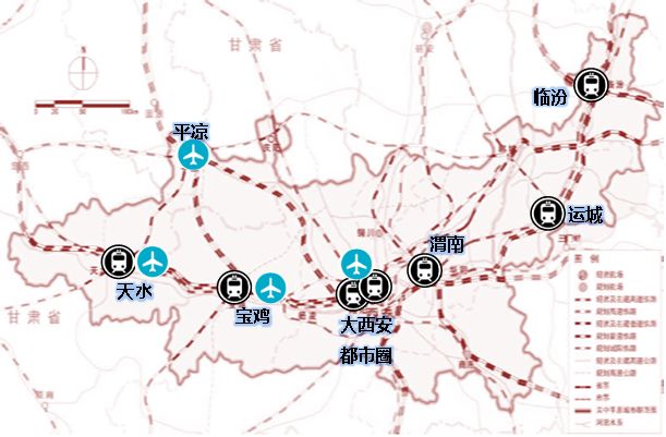 图:关中平原城市群高铁动车及机场建设分布情况