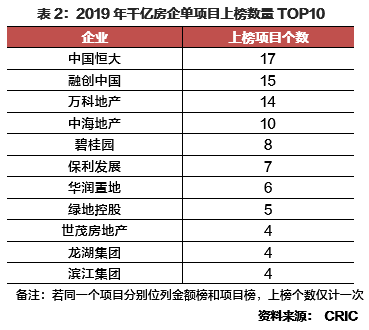2019年单项目销售金额TOP100项目中,千亿房企参与开发的项目达到了60个;面积榜TOP100中,千亿房企参与开发的数量达到了79个,其中恒大、融创、万科、中海、碧桂园这些龙头房企依旧占据着上榜项目数量的前列,且与以往相比优势在进一步扩大。大体量项目的打造除了要依托资金,参考企业资质之外,同时更加考验企业的操盘能力。新的市场竞争环境之下,规模房企产品系打造能力以及项目操盘运作能力优势在逐渐放大,强者恒强的局面之下大体量的项目往往由规模房企竞得。